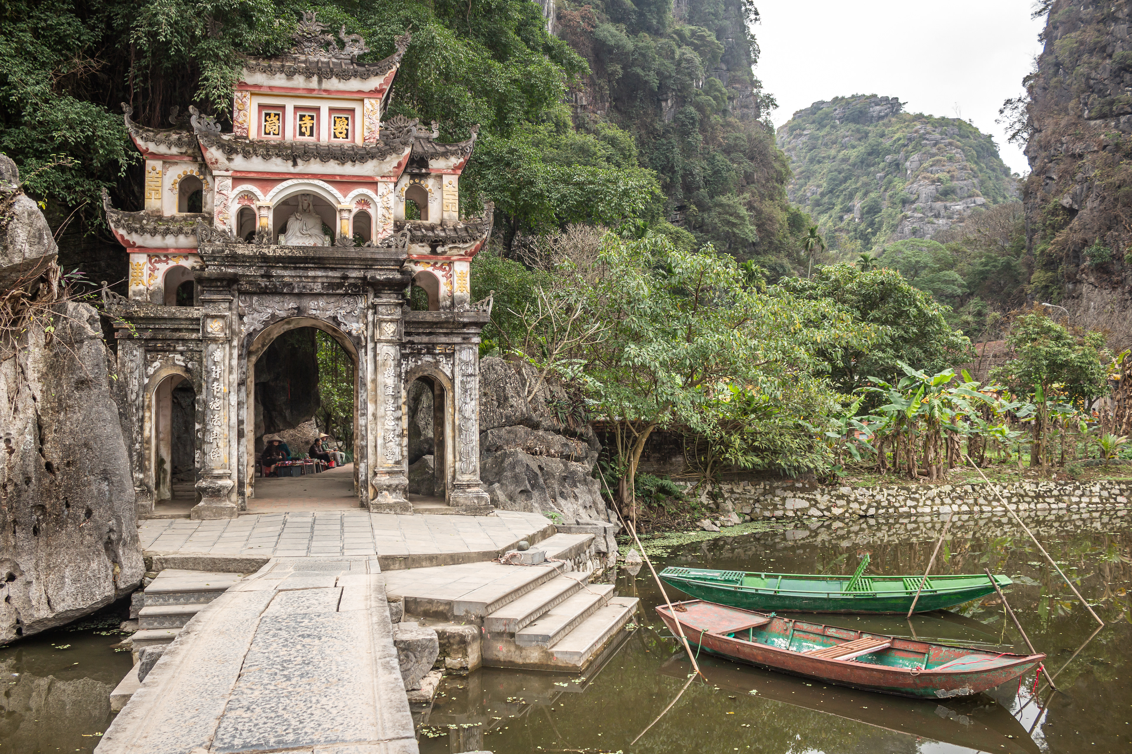A short bike ride from the Tam Coc boat dock, this 15th-century pagoda is built into a mountainside. Climb the stone steps through the pagoda’s three tiers for spectacular views of the surrounding karst landscape.