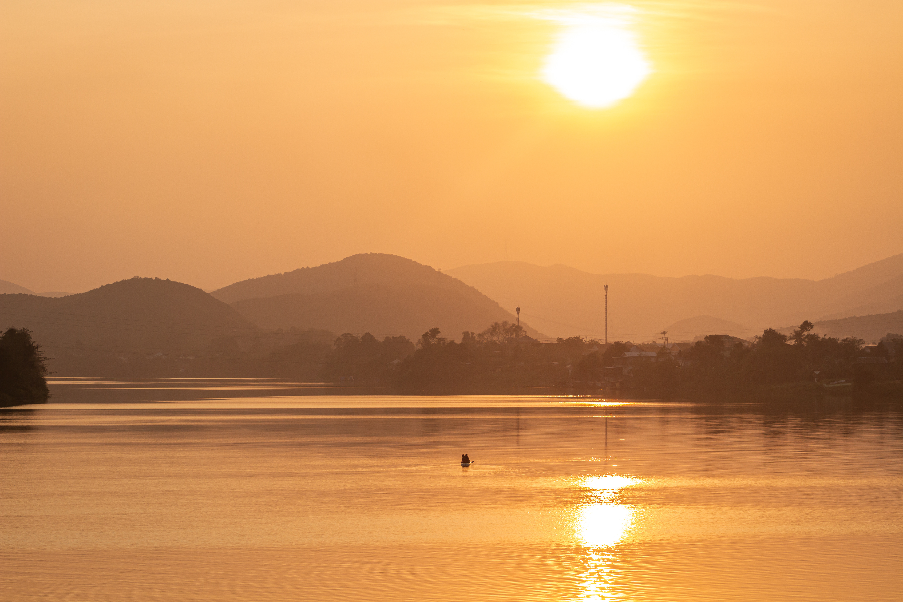 Releasing a lantern on the river for good luck.